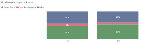 Økningen kommer fra ferie- og fritidssegmentet, der andelen økte med 3,7 % i januar og 7,11% i februar.