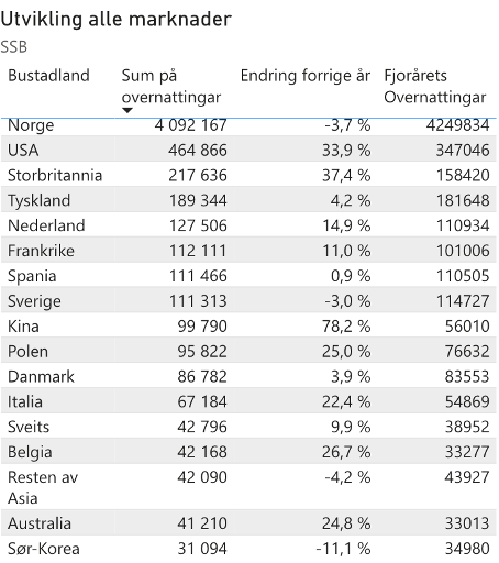 Øvrige kilder: https://reiseliv.innovasjonnorge.no/seksjon/overnattingsstatistikk