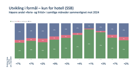 Ser vi på enkeltmåneder er det god vekst i vintermånedene januar og februar, samt i skuldersesong ved april og september.